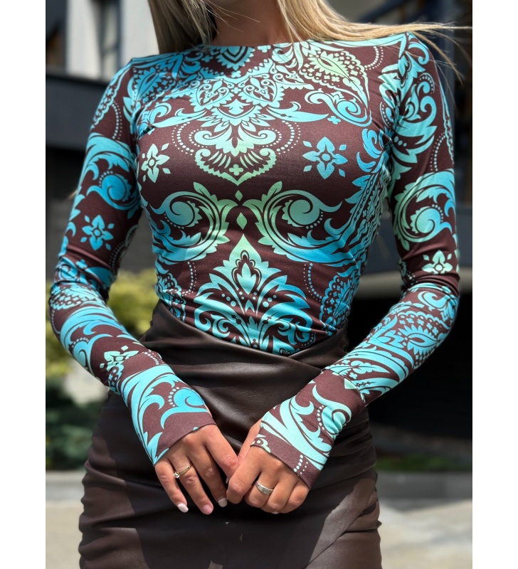 BLUZKA Z PODWÓJNEGO MATERIAŁU BRĄZOWO/NIEBIESKA POLSKIEGO PRODUCENTA MARINA