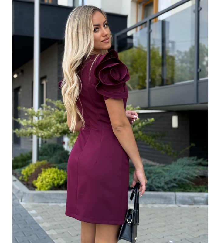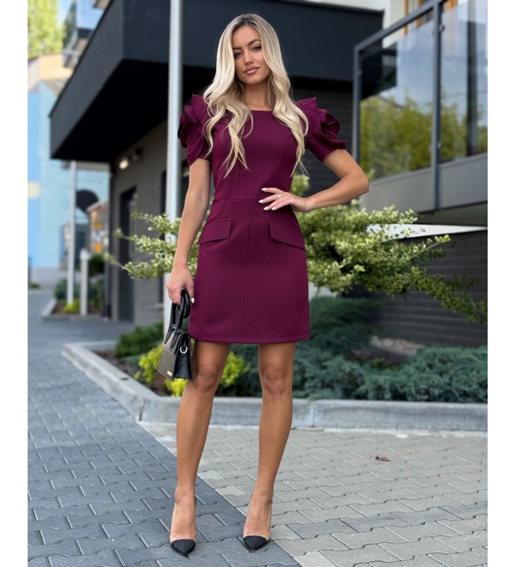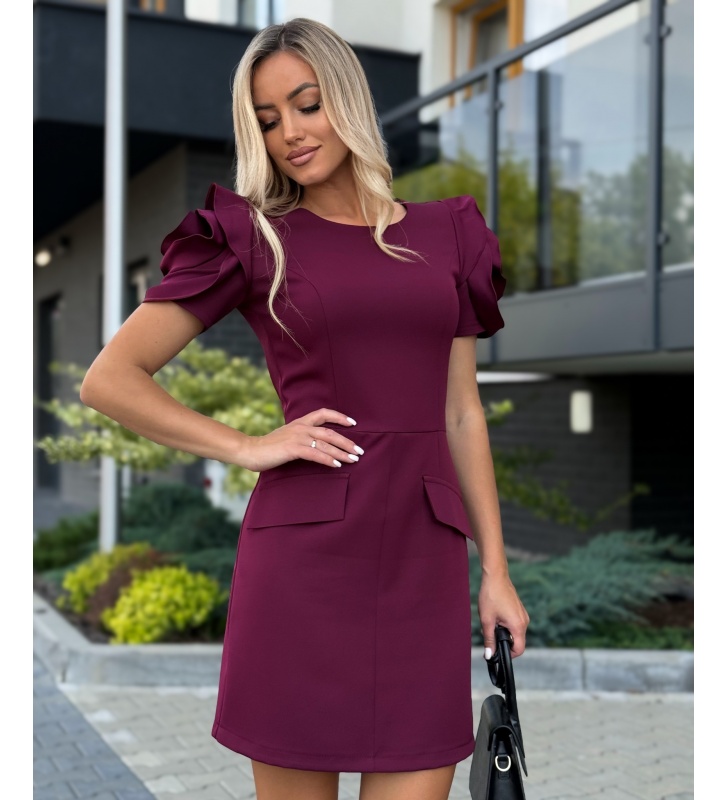 Sukienka o prostym kroju z ozdobnymi klapami imitującymi kieszenie oraz efektownym rękawem przypominającym Kwiat. Sukienka posiada kryty zamek na plecach,  zaszewki- idealnie modeluje sylwetkę.  W rozmiarze XS S M L XL.