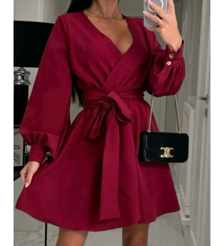 • Wiązaniem w talii - szarfa z tej samej tkaniny, co pozwala na idealne dopasowanie do sylwetki i podkreślenie talii, dodatkowo w talii gumka.